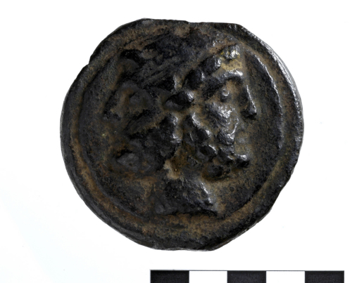 Testa laureata di Giano barbato.