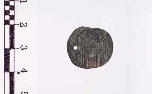 S. Marco a d., in piedi di fronte, porge il vessillo al Doge a s. in piedi, di fronte.