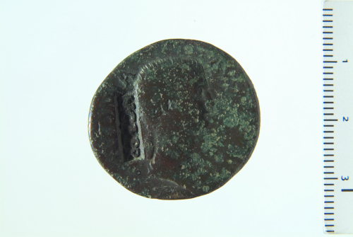 Busto drappeggiato di Antonia a d. con capelli legati; contorno perlinato
