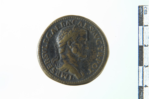 Testa laureato di Galba a d.