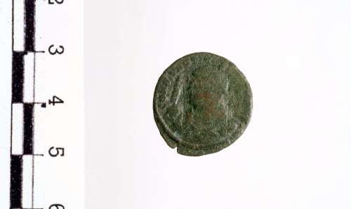 Busto laureato e drappeggiato di Costantino II a s. con Vittoria su globo e mappa