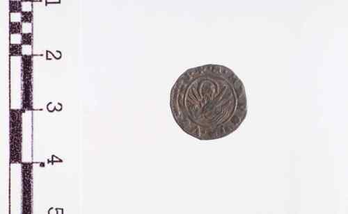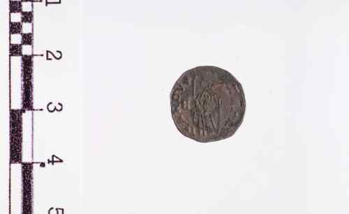 Il Doge con berretto e manto in piedi a s., tiene con ambo le mani il vessillo.