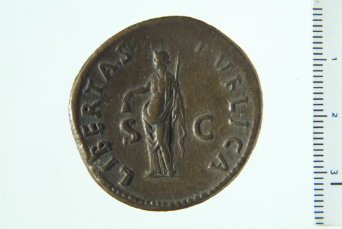 Busto laureato e drappeggiato di Galba a d.; contorno perlinato.