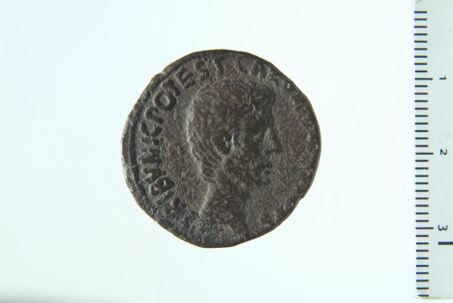 Testa di Augusto a d.; contorno perlinato