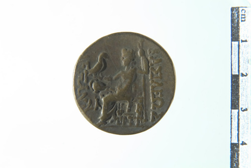 Testa di Eracle con leontè a d., controno perlinato