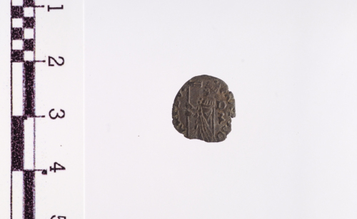 Il doge in piedi verso s. tiene con ambo le mani il vessillo, dietro le lettere D/Z