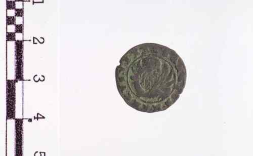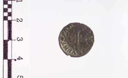 Croce pisana ornata di 16 globetti: 12 alle estremità delle braccia e 4 agli angoli; cerchio lineare.