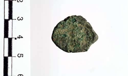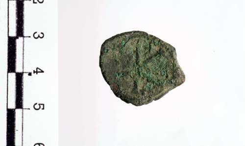 Busto frontale, elmato e corazzato, di Maurizio Tiberio con globo crucigero e scudo