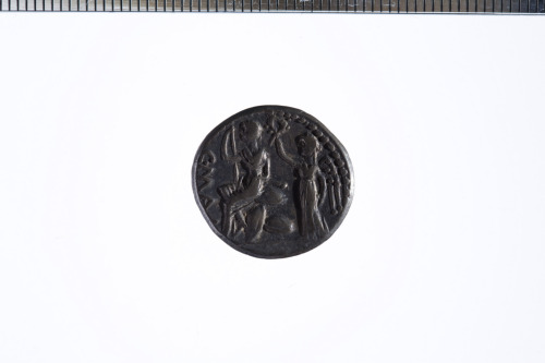 Testa laureata di Apollo a d.; sotto il collo, X barrato; c.p.