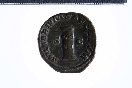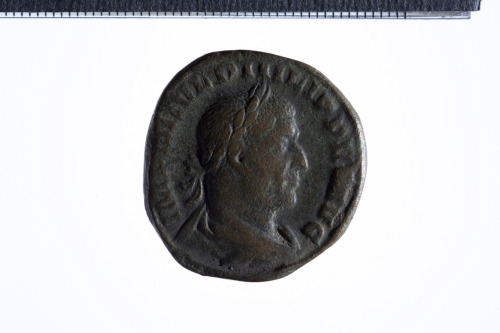 Busto laureato di Filippo I a d., con corazza (?) e paludamentum, di tre quarti di spalle; contorno perlinato.