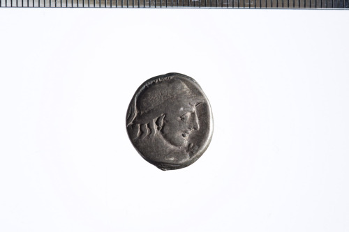 Busto di Marte con elmo corinzio visto da dietro con la testa volta a d., con una lancia sulla spalla s. e una spada sulla d.; c.p.