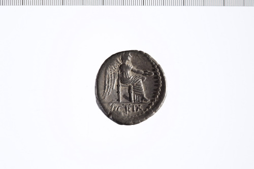 Busto drappeggiato femminile a d. con i capelli legati da un nastro. Bordo perlinato.