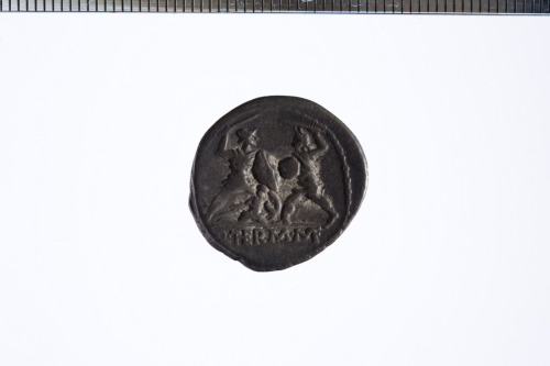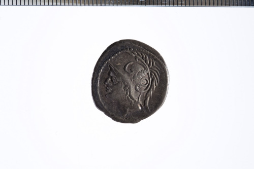 Testa galeata di Marte a s. con un elmo piumato e con una lunga cresta; c.p.
