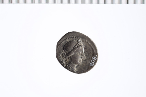 Testa diademata di Venere a d.; dietro Cupido. Cerchio perlinato.
