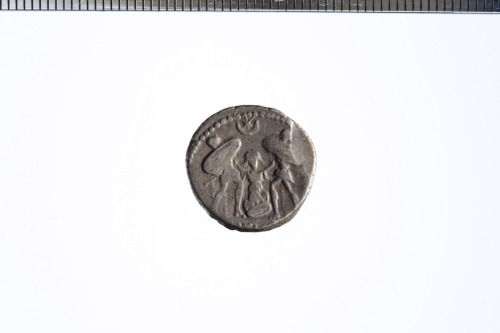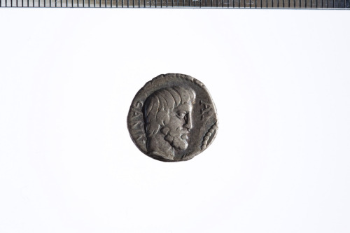 Testa barbata di Re Tazio a d.; davanti, un ramo di palma; c.p.