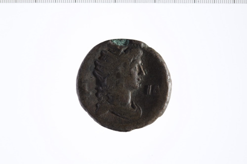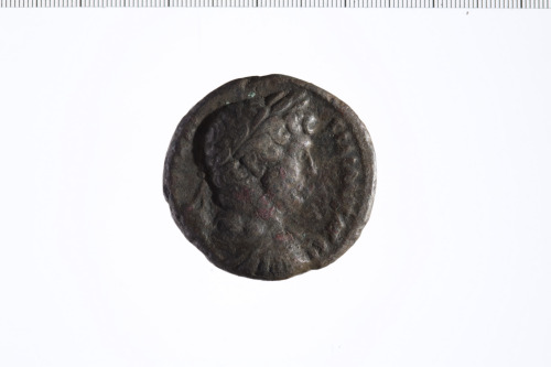 Busto laureato di Adriano a d., paludato, corazzato, di tre quarti, di spalle.