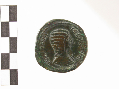 Busto drappeggiato di Giulia Domna a d.; contorno perlinato.
