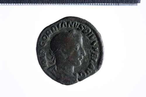 Busto laureato di Gordiano III a d. con corazza e paludamentum, di tre quarti di spalle; contorno perlinato.