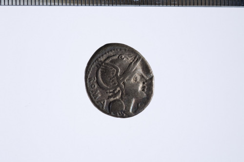Testa elmata di Roma a d., davanti simbolo di valore X, c.p.