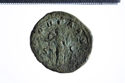 Busto laureato di Pupieno a d. con corazza (?) e paludamentum, di tre quarti di spalle; contorno perlinato.