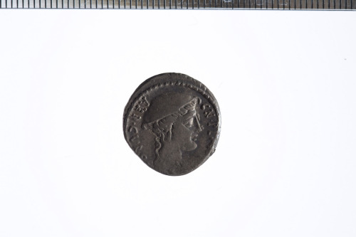 Testa femminile a d. con il causia. Bordo perlinato.