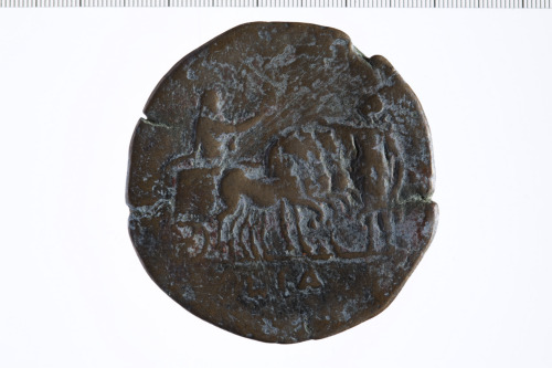 Busto laureato di Adriano a d., paludato, corazzato, di tre quarti, di spalle; contorno perlinato.