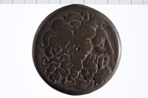Testa di Zeus Ammone a d. con diadema e ornamenti floreali. Contorno lineare.