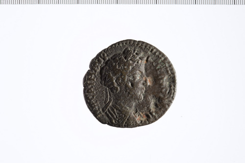 Busto di Commodo a d., laureato, con paludamentum e corazza.