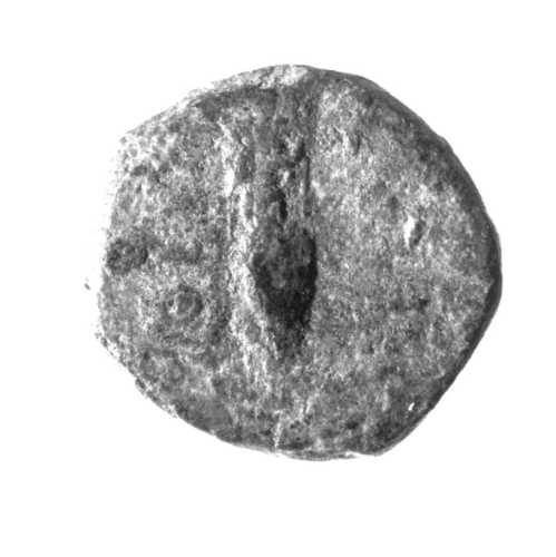 Sfinge seduta a d. tiene nella zampa anteriore s. un grappolo d'uva; di fronte simbolo