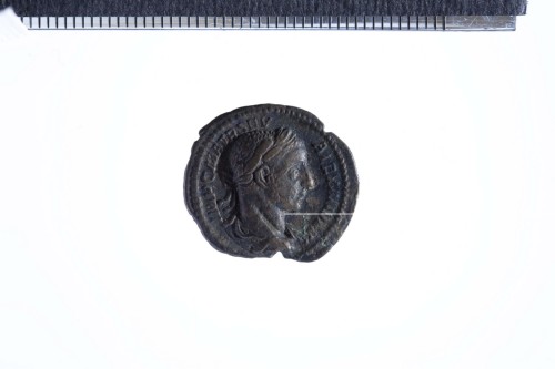 Busto laureato di Alessandro Severo con paludamentum; contorno perlinato.