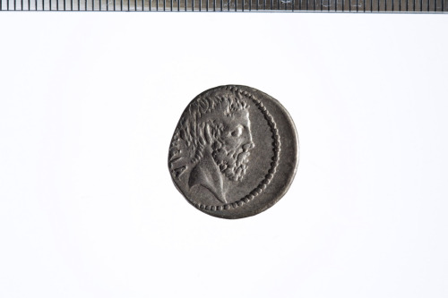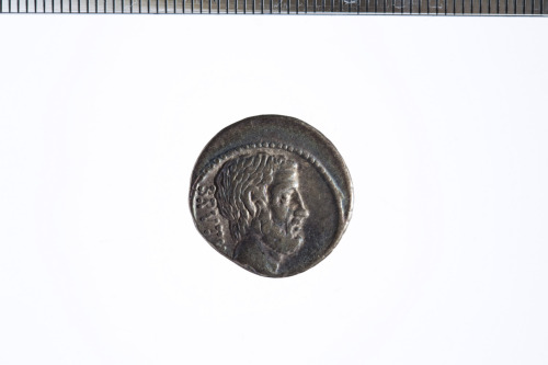 Testa del console L. Iunius Brutus a d. Bordo perlinato.
