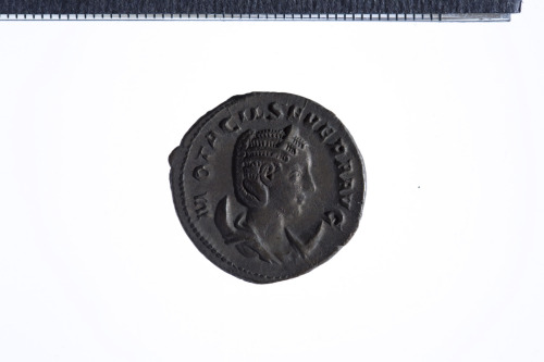 Busto diademato e drappeggiato di Otacilia a d. su crescente, di tre quarti in avanti; contorno perlinato.