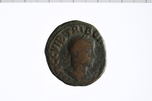 Busto di laureato di Treboniano Gallo a d., paludato.