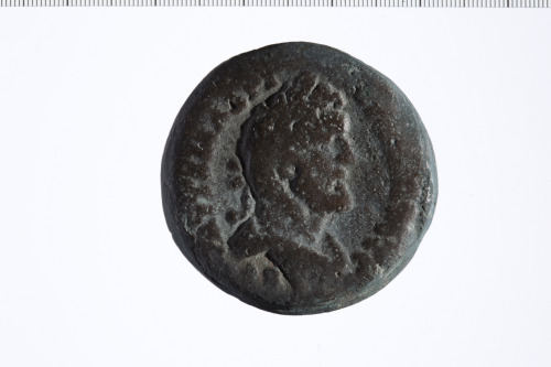 Busto laureato di Antonino Pio a d., paludato, corazzato, di tre quarti, in avanti.