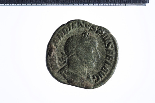 Busto laureato di Gordiano III a d. con corazza (?) e paludamentum, di tre quarti di spalle; contorno perlinato.