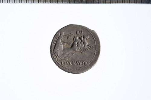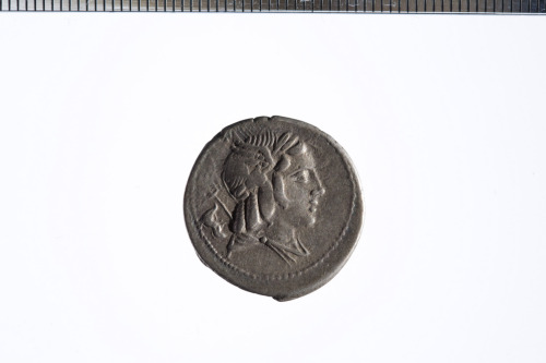 Testa maschile a d. laureata, con le ali e con dietro un tridente (attributi di Apollo, Mercurio e Nettuno); dietro un simbolo non meglio identificabile (un animale?); c.p.