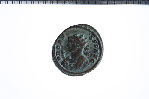 Busto radiato con mantello imperiale di Probo a s., con scettro a forma di aquila; contorno perlinato.