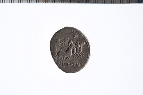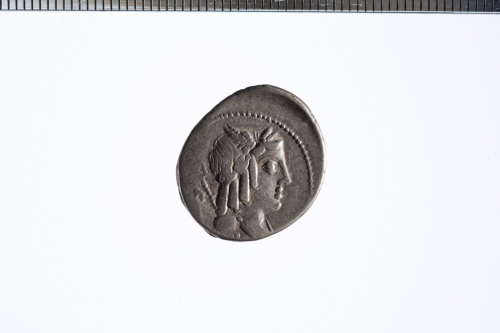 Testa maschile a d. laureata, con le ali e con dietro un tridente (attributi di Apollo, Mercurio e Nettuno); dietro un simbolo non meglio dentificabile; c.p.