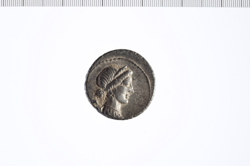 Testa laureata e diademata di Venere a d.; a s., Cupido. Bordo perlinato.