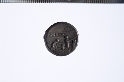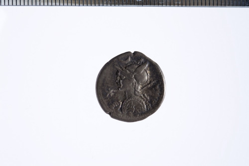 Busto di Roma a s. con elmo piumato e scudo nella s., con la d. regge lancia posata sulla spalla d.; sopra crescente, davanti simbolo di valore X barrato; c.p.