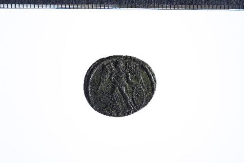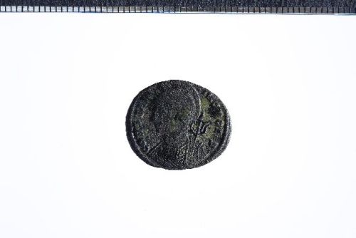 Busto elmato di Costantipoli a s. con scettro