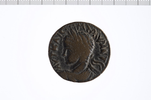 Busto di Elagabalo a s. laureato con paludamentum e corazza.