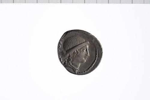 Testa di Giunone Moneta a d. Bordo perlinato.