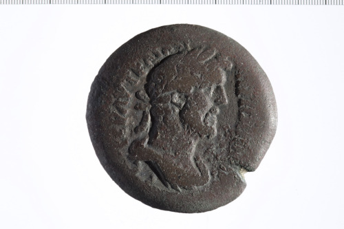 Busto laureato di Antonino Pio a d., paludato, corazzato, di tre quarti, in avanti.