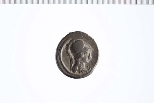 Busto di Minerva a d. con egida ed elmo corinzio crestato. Bordo perlinato