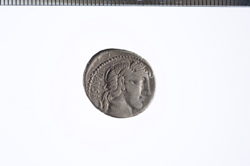Testa laureata di Apollo a d.; sotto il mento un simbolo o lettera di controllo non meglio identificabile; c.p.