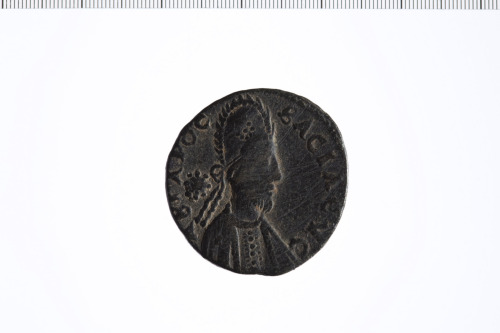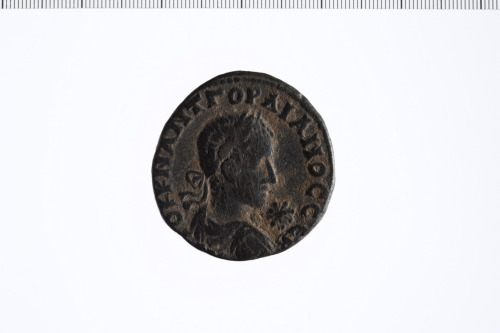 Busto laureato a d. di Gordiano Pio, paludato, corazzato, di tre quarti, di spalle; davanti, stella; contorno perlinato.