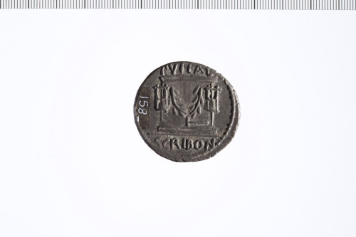 Testa di Bonus Eventus a d. Cerchio perlinato.