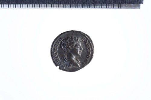 Busto a testa nuda di Geta a d., con paludamentum e corazza (?), di tre quarti di spalle; contorno perlinato.