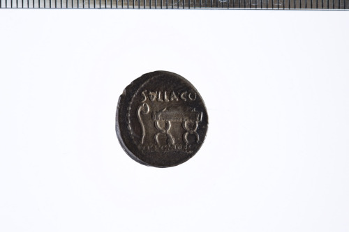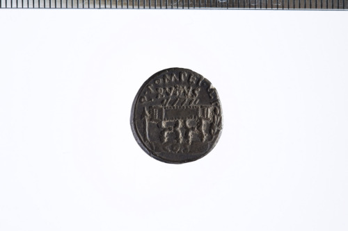 Sedia curule; a s. freccia, a d. ramo d'alloro.